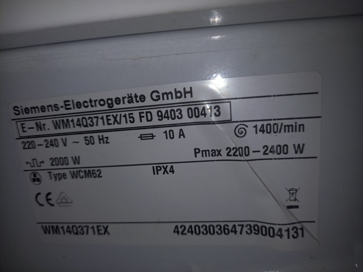 Siemens IQ500 WM14q371EX WCM62 1400/min uszkodzony bęben